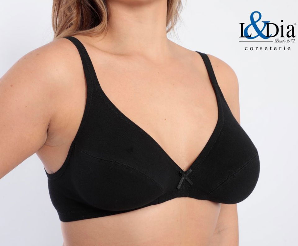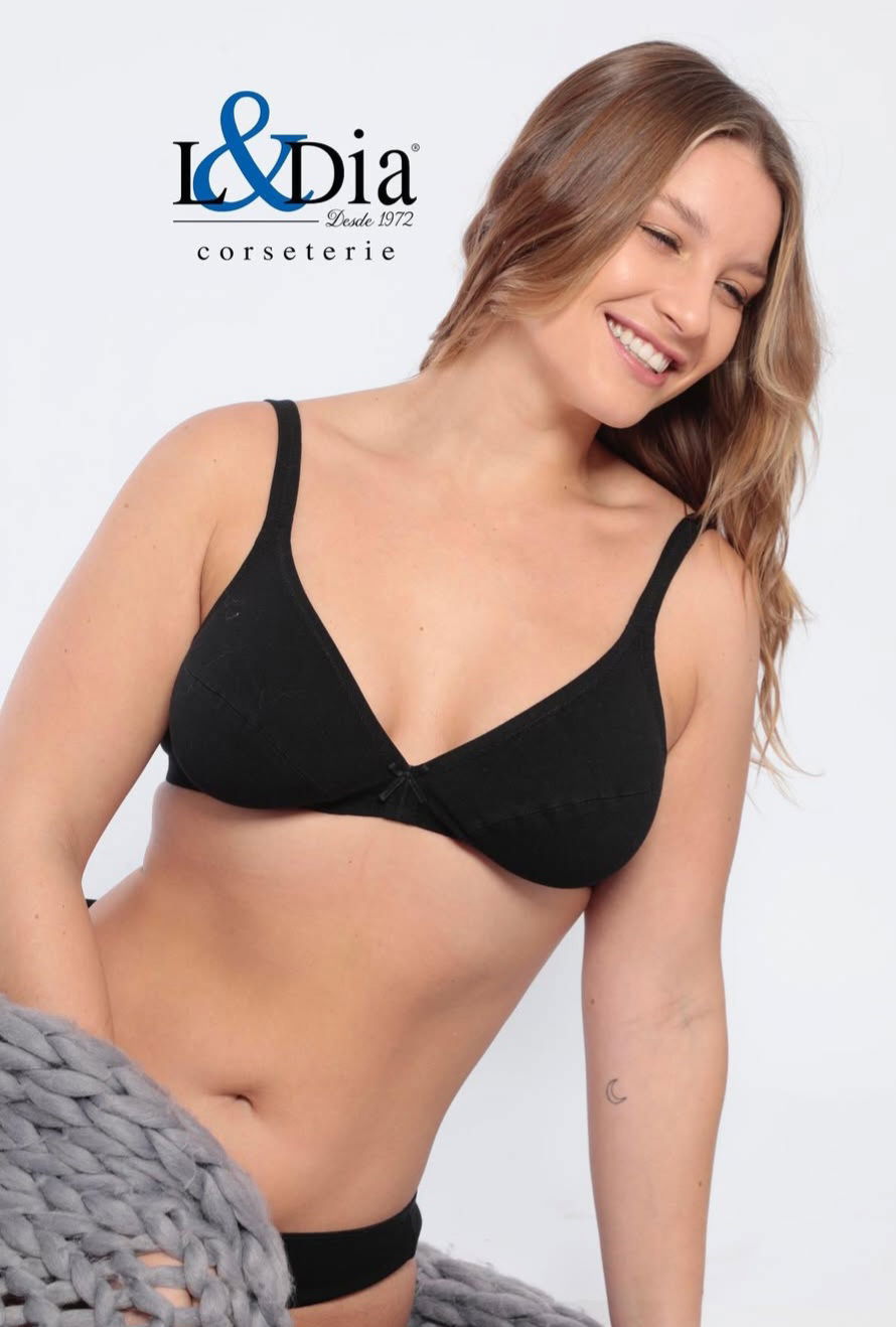 Soutien sin aro. Algodón lycra. Taza pespunteada. Elástico embutido.