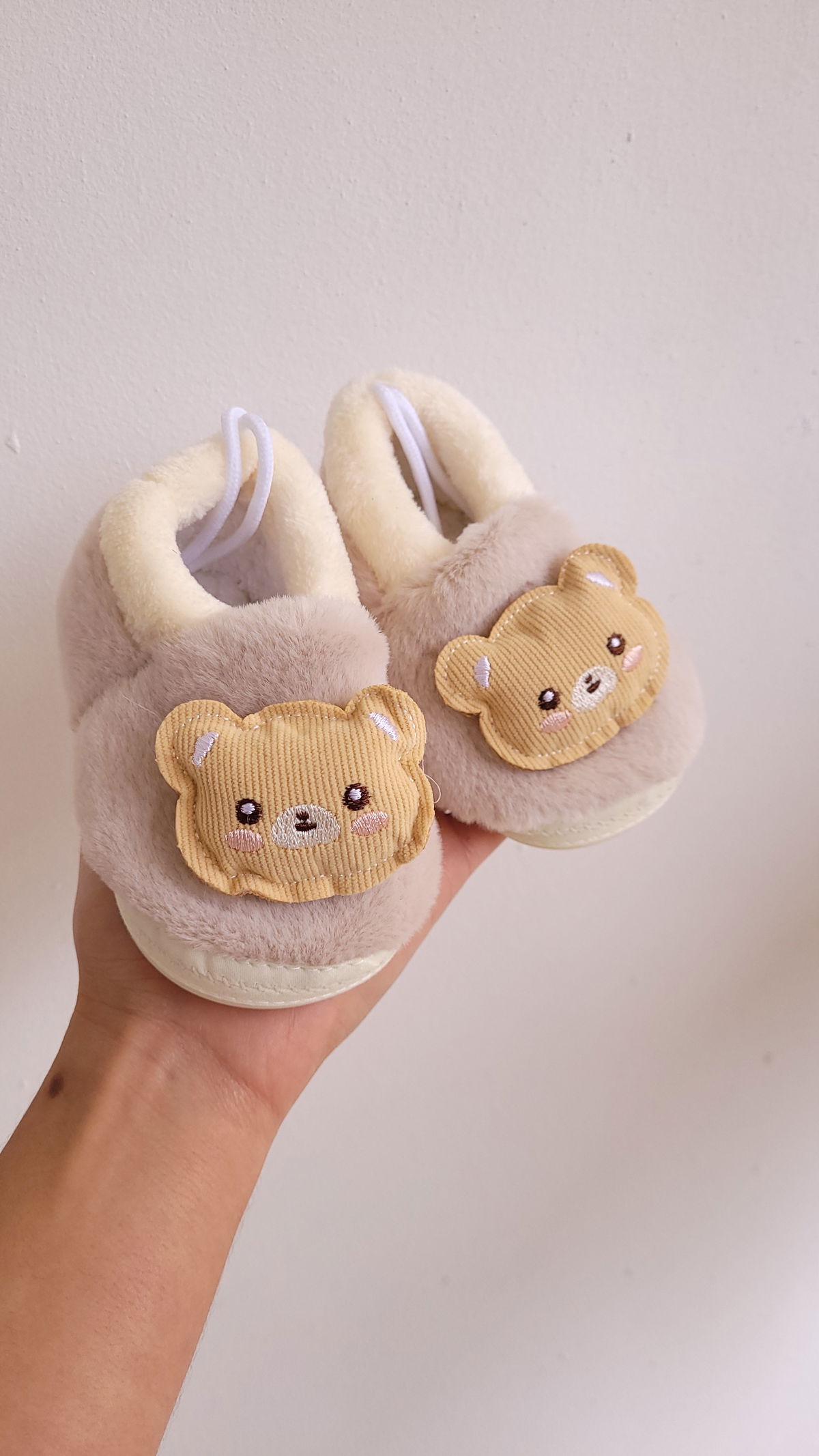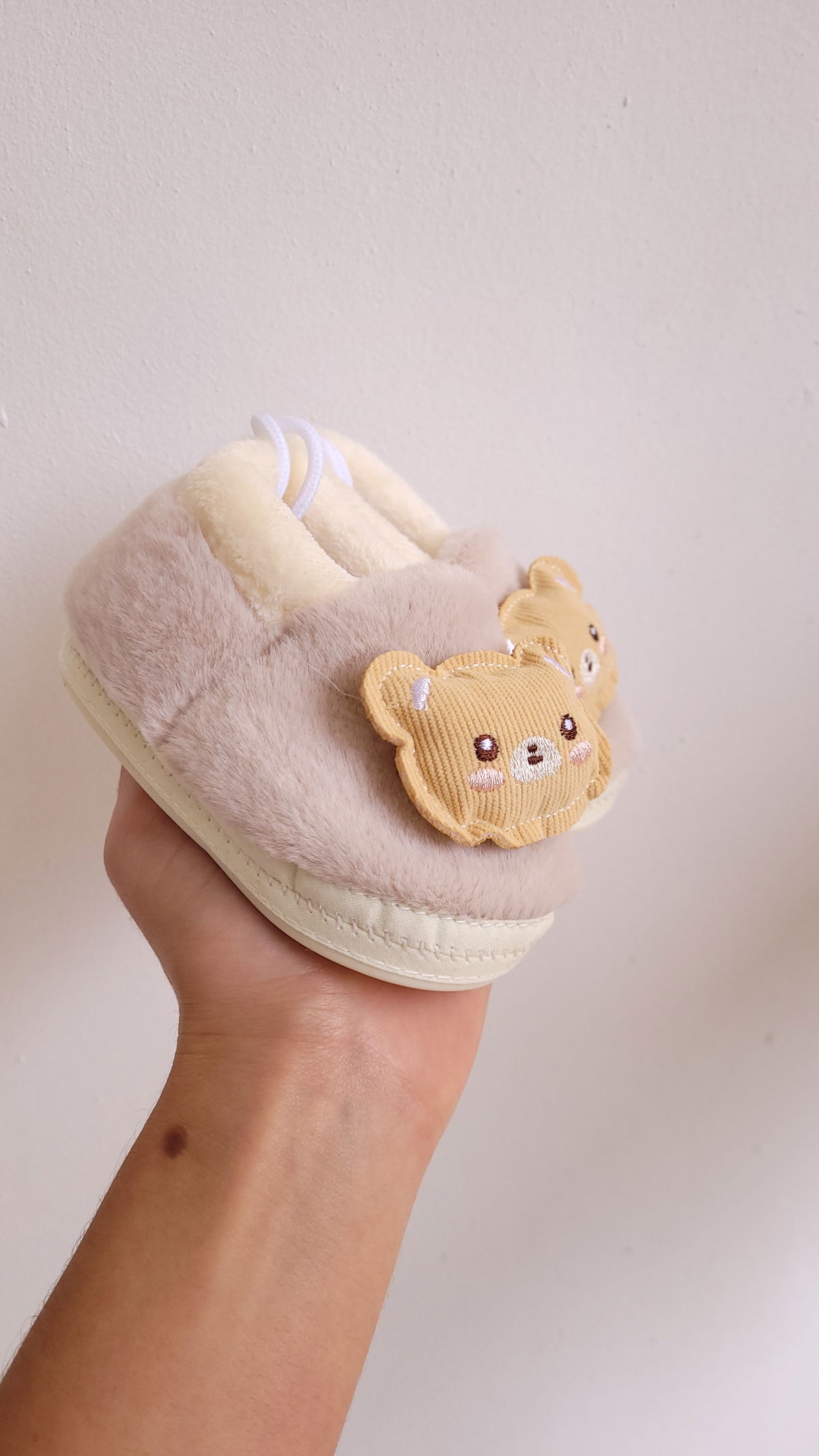 Pantufla de bebe importada. Suela de goma costurada. 2 a 10 meses. Con cordón para ajustar