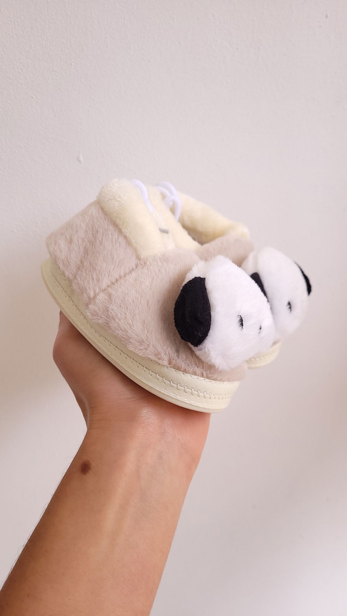 Pantufla de bebe importada. Suela de goma costurada. 2 a 10 meses. Con cordón para ajustar