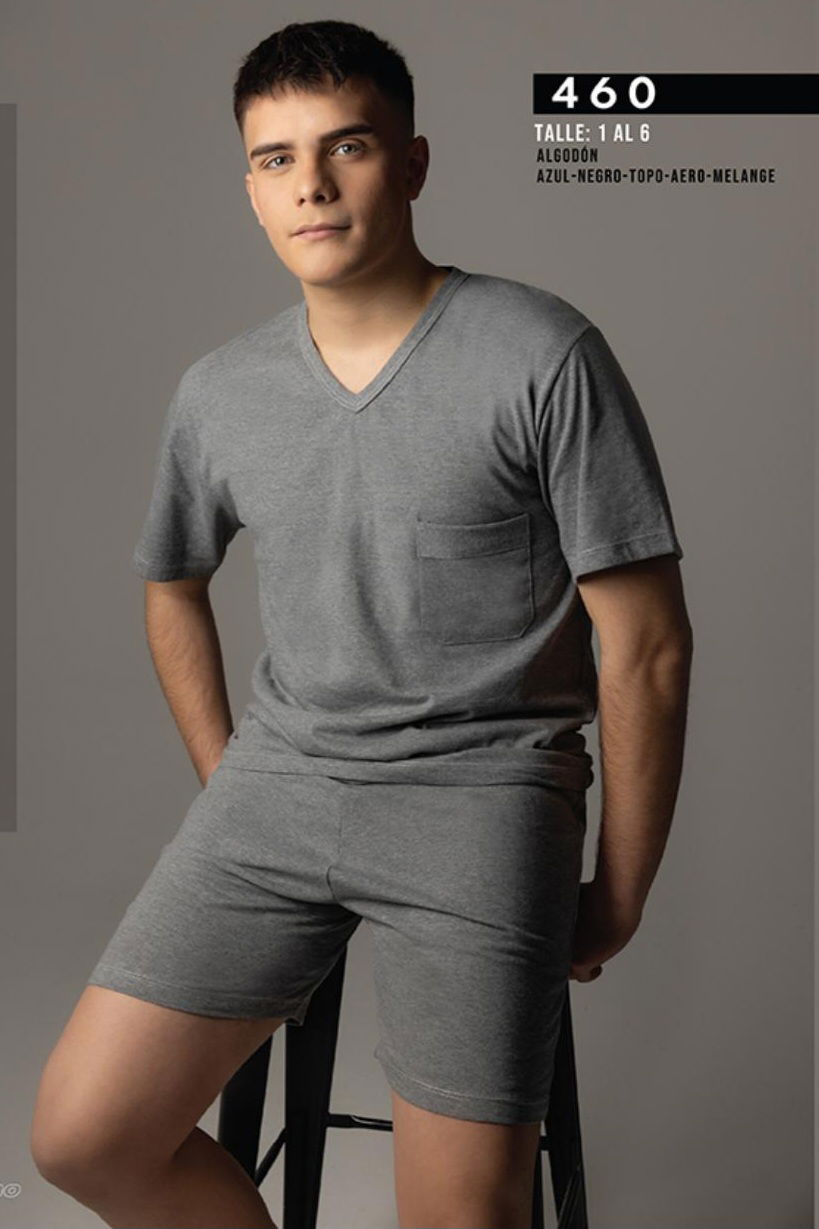 Pijama de algodon escote V