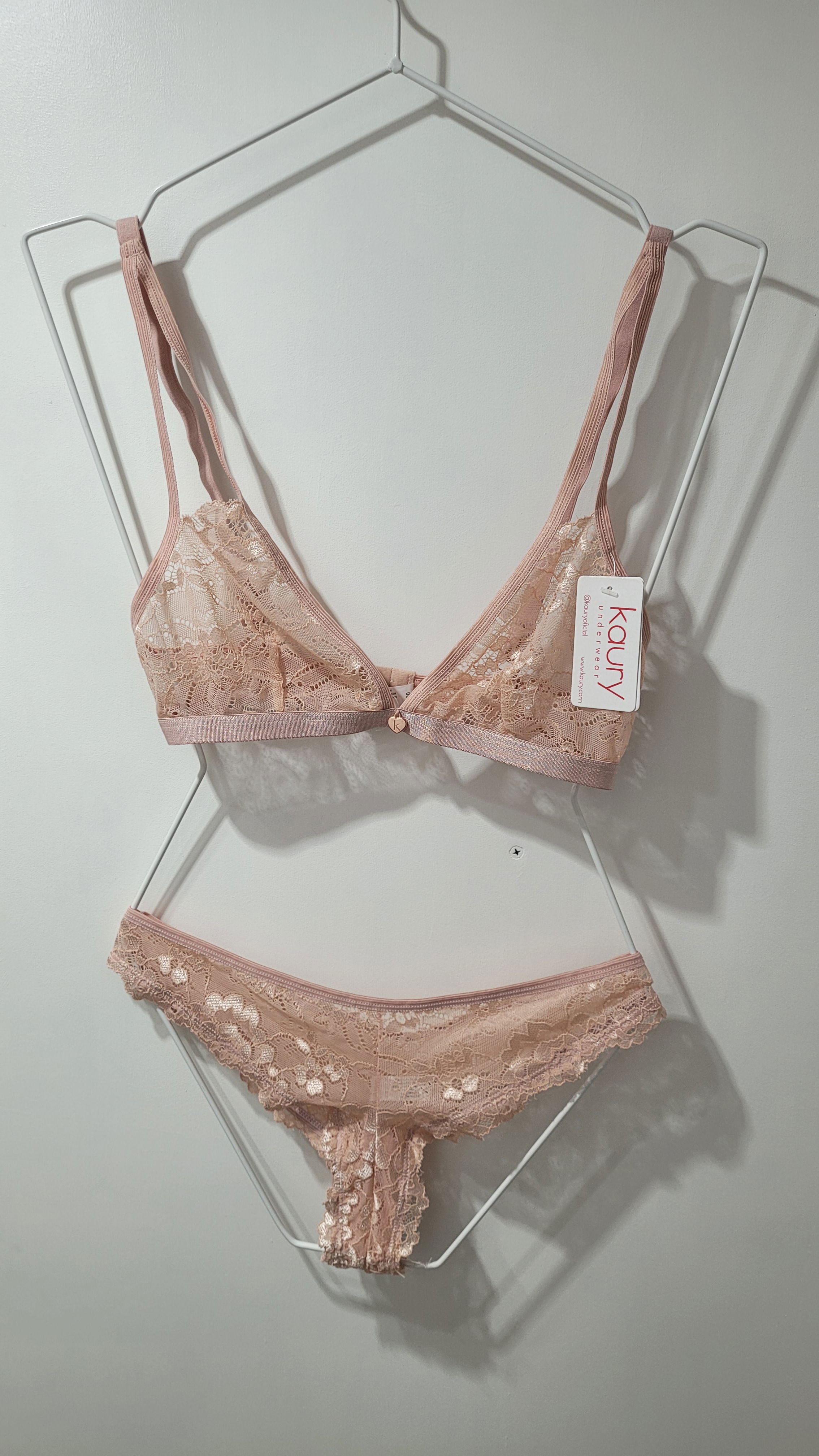 Conjunto de puntilla. Corpiño triangulito con detalle en breteles y semi less