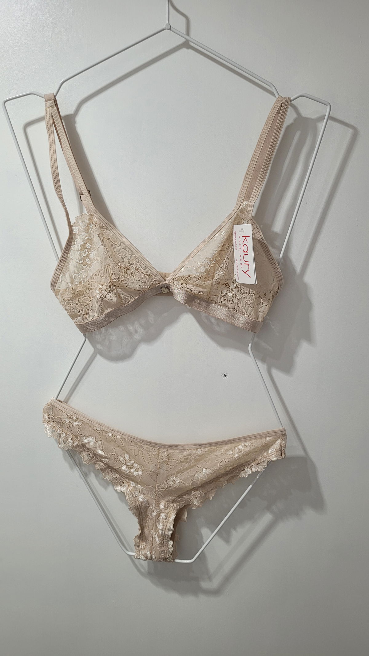 Conjunto de puntilla. Corpiño triangulito con detalle en breteles y semi less