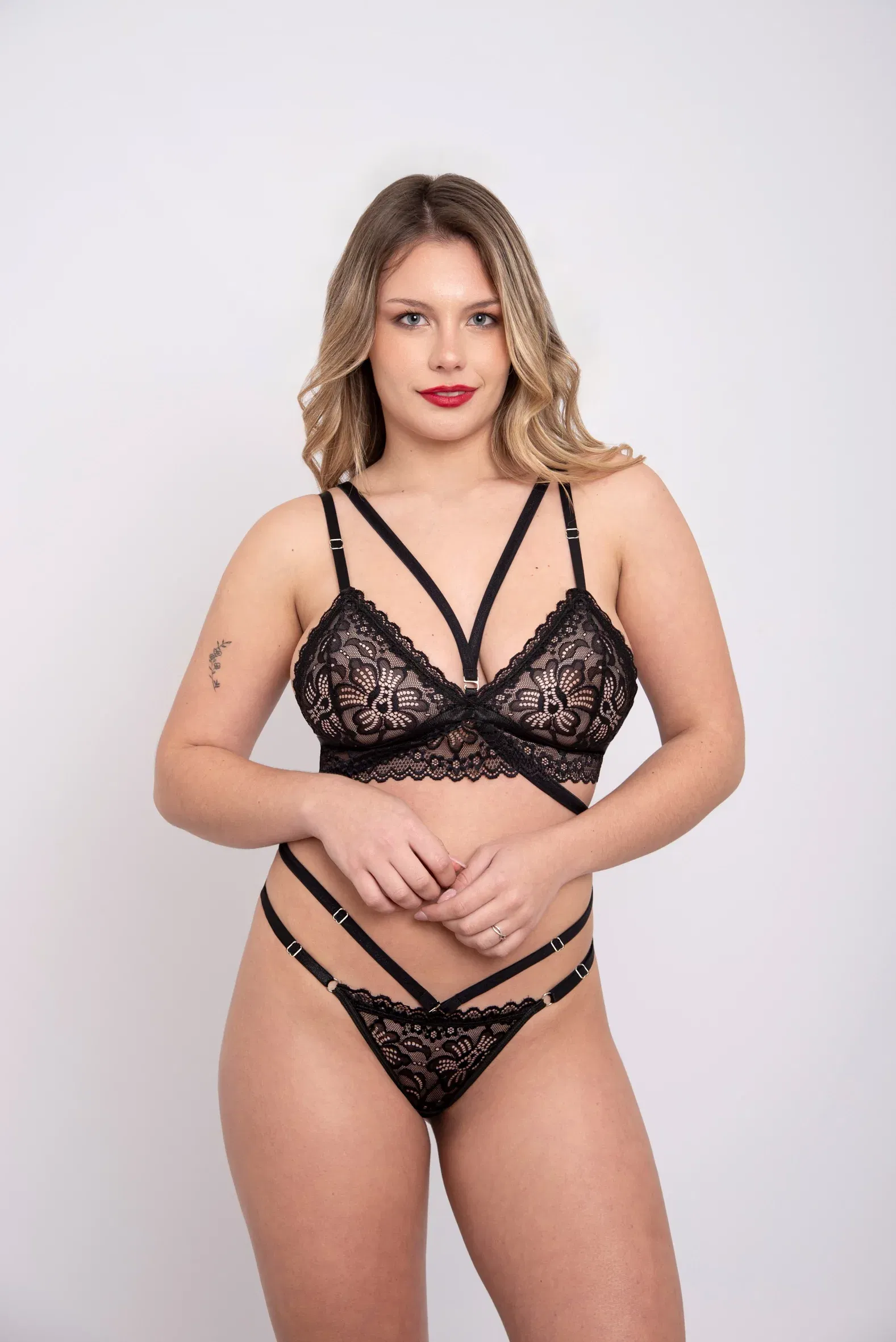 CONJUNTO TRIÁNGULO DE PUNTILLA Y COLA LESS REGULABLE CON BRETELES CENTRALES DESMONTABLE