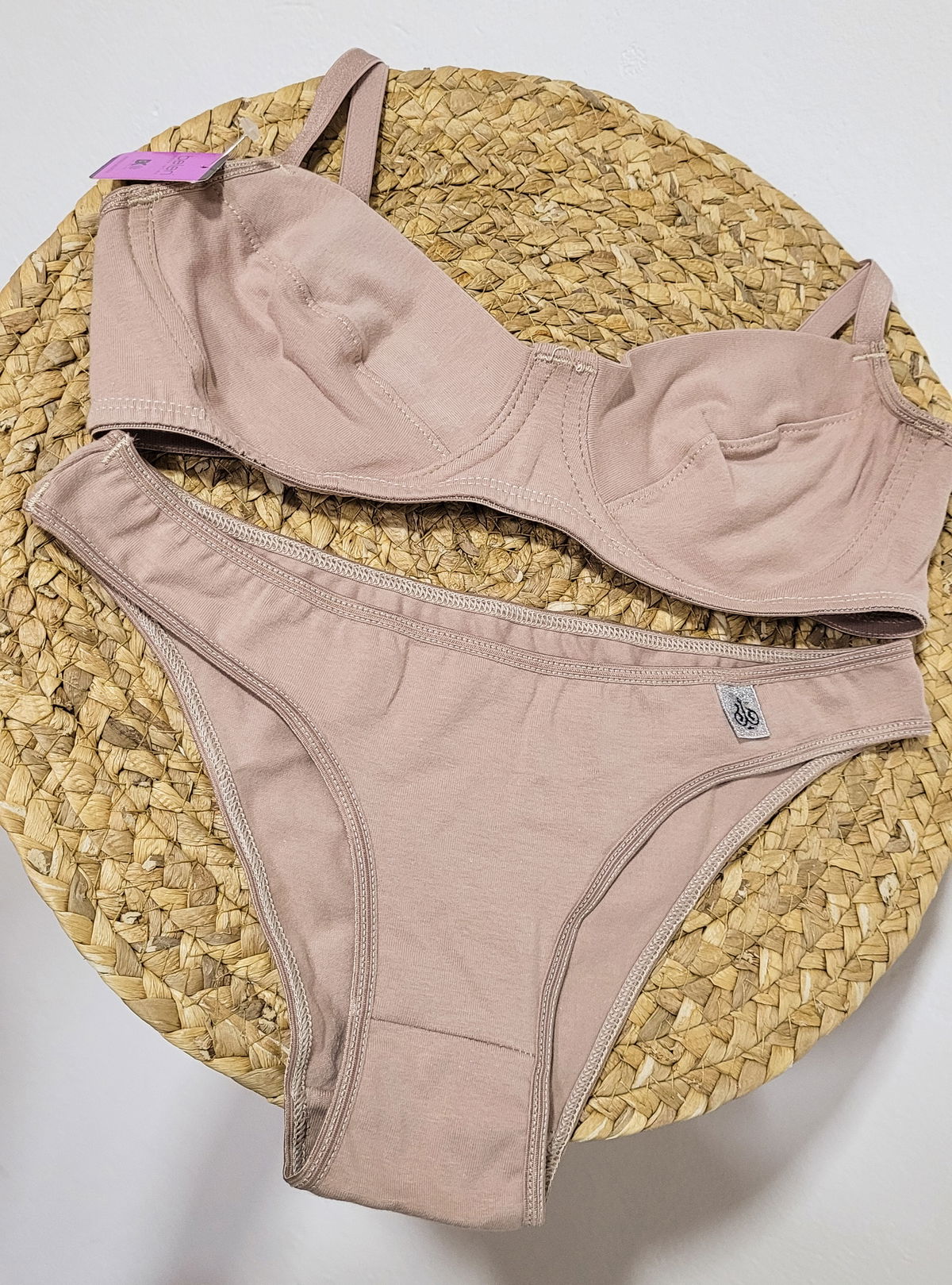 Conjunto de algodon y lycra. Corpiño falso aro sin taza y vedetina